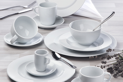 Qualitätsgeschirr zahlt sich aus. Aus diesem Grund bieten wir Ihnen Profiporzellan von Markenherstellern. Diese zeichnen sich durch Spülmaschineneignung, hohe Kantenschlagfestigkeit und lange Nachkaufgarantie sowie innovative Entwicklungen in Formen und Farben aus. Von der günstigen Serie bis hin zur exklusiven Tischkultur findet bei uns jeder die passenden Serien und Teile.